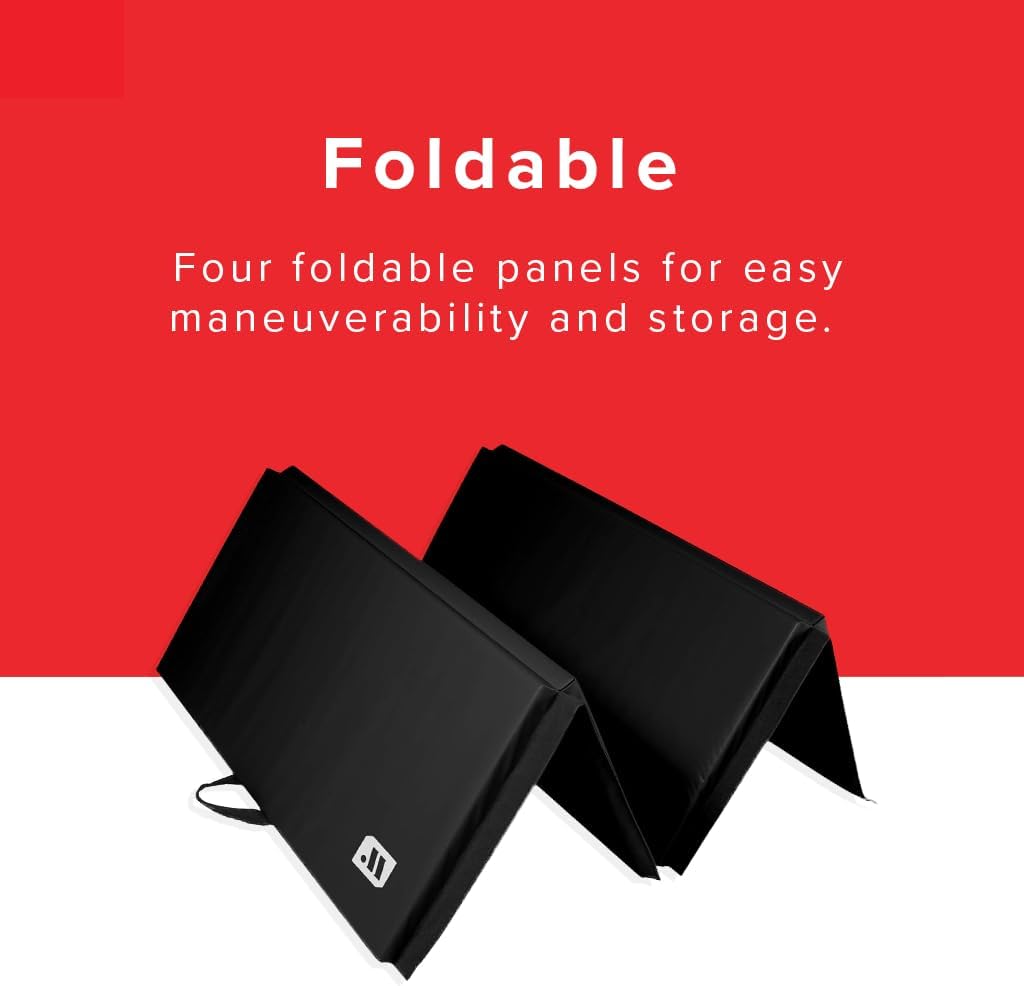 - Convenient Storage - Lightweight, foldable design makes the mat portable and compact for storage, with carrying handles for convenient on-the-go-fitness for personal trainers, athletes, exercising outdoors or indoor workouts. Each 4’x8’ mat consists of four panels that fold down to 4' x 2' x 8" for easy maneuverability and storage.