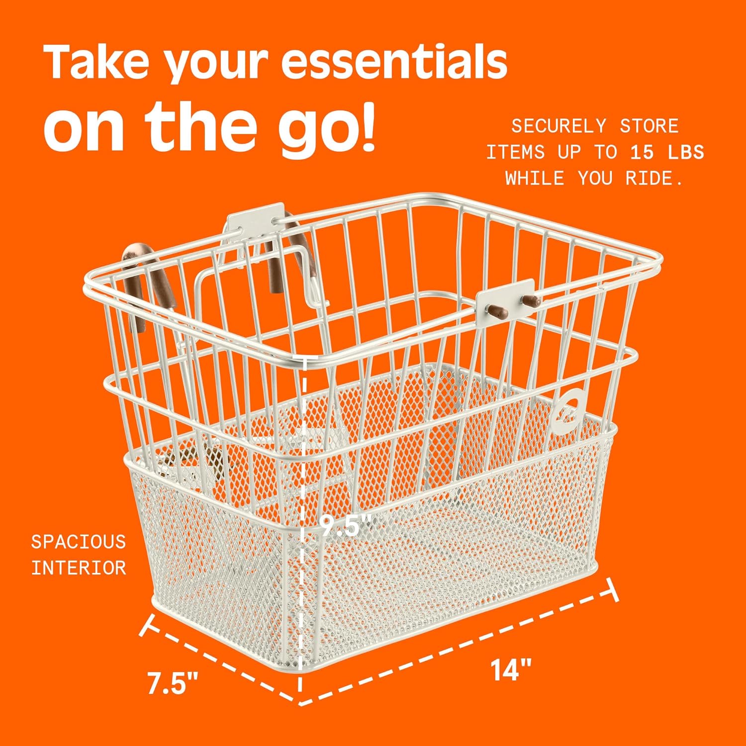 - BUILT FOR DAILY DUTY - Weather-resistant steel construction stands up to rain, sun, and wear. Like all quality bicycle baskets, this bike front basket delivers reliable durability for years of use