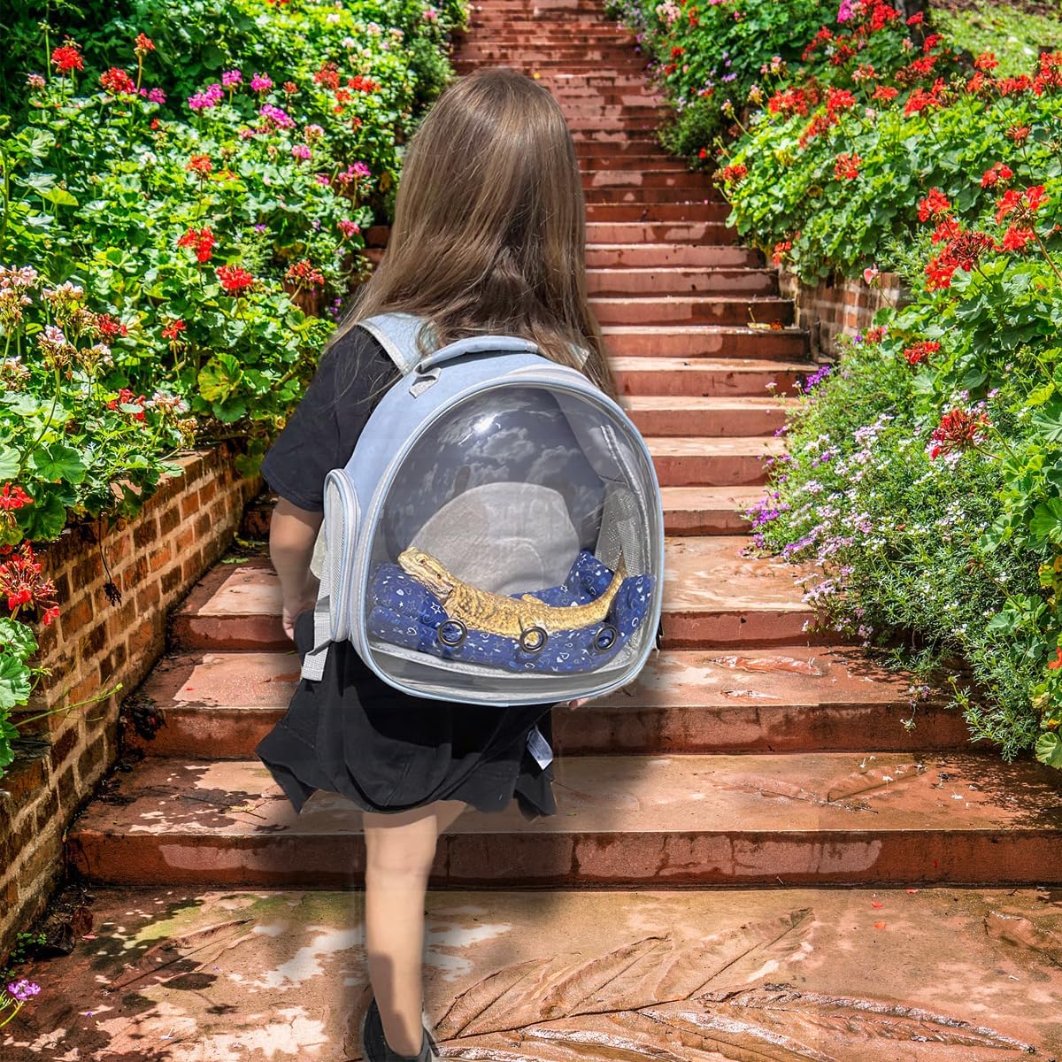 - Pet-safe Material, bearded dragon carrier with a astronaut clear bubble window, protect small pets from bugs, dust and allergen sources. Also pet could enjoy the sunshine and scenery in outdoor adventure.