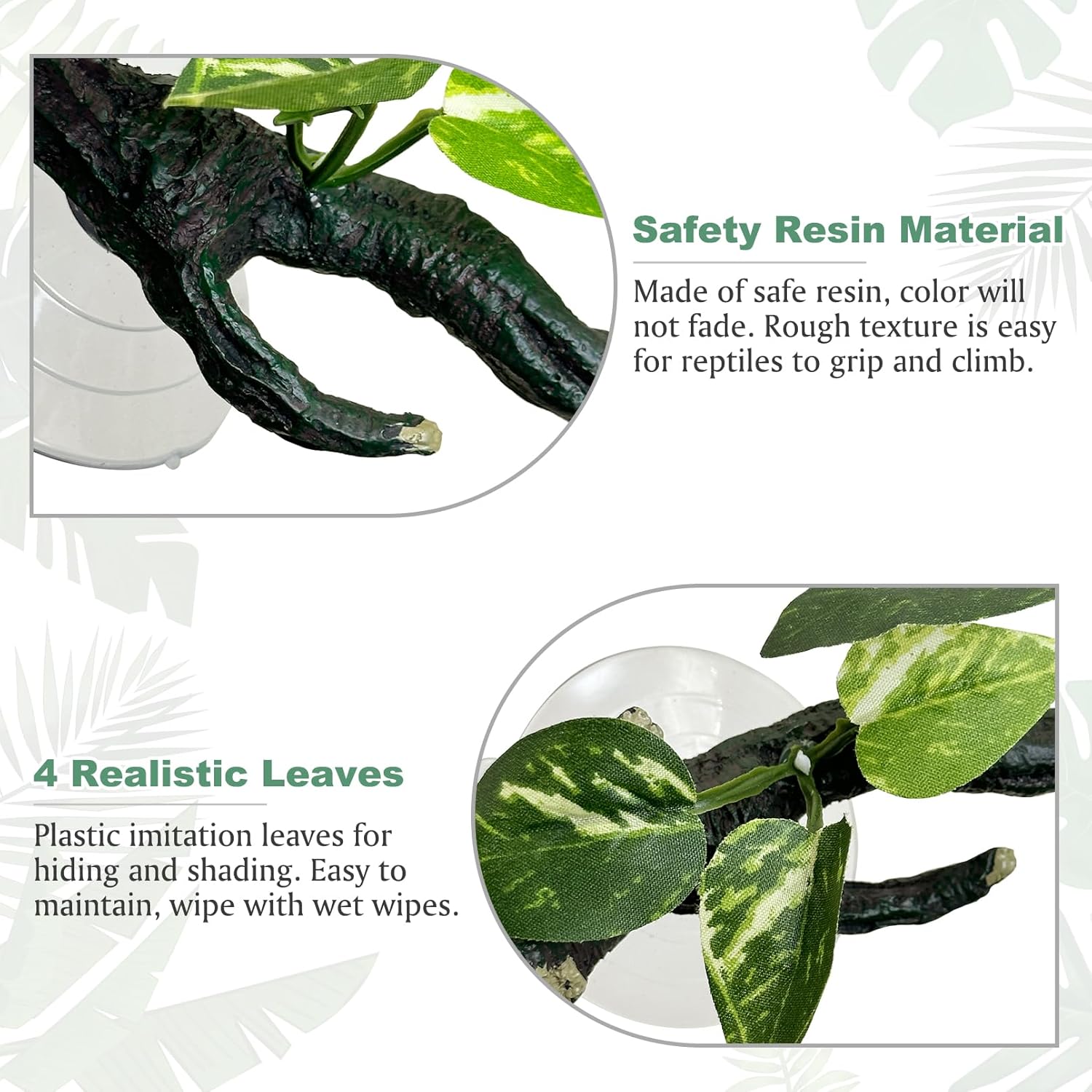 - [Powerful Suction Cups]: Branches for reptiles comes with 2 suction cups with strong adsorption, which can be stably fixed on the clean and smooth tank wall, not easy to fall off, let your lizard climb and play to its heart's content