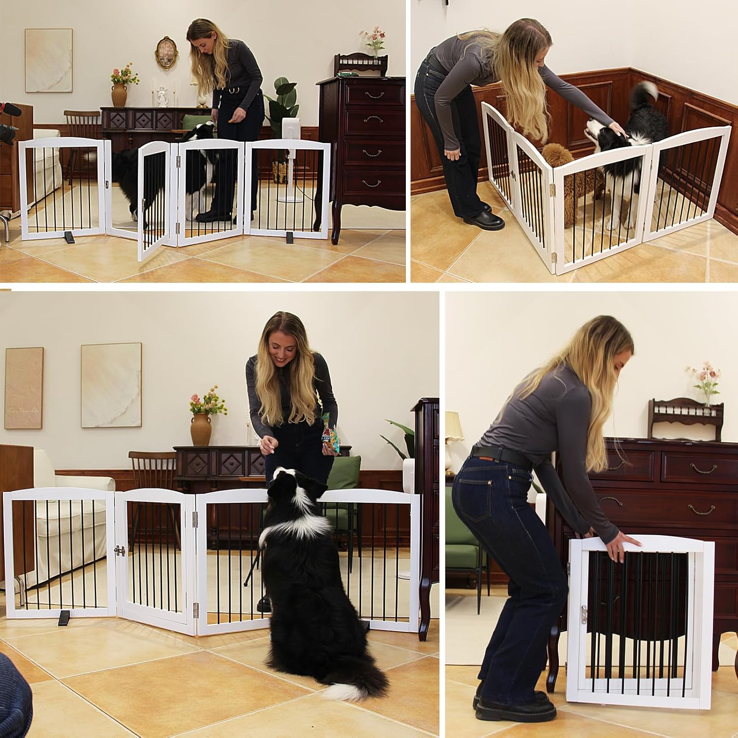 ZJSF Foldable Indoor Dog Door with Walk Through Door, Freestanding Pet Door for The House,Doorways, Stairs, Pet Puppy Safety Fence with Support Feet, White 6 Panels 120" Wide 32''Height