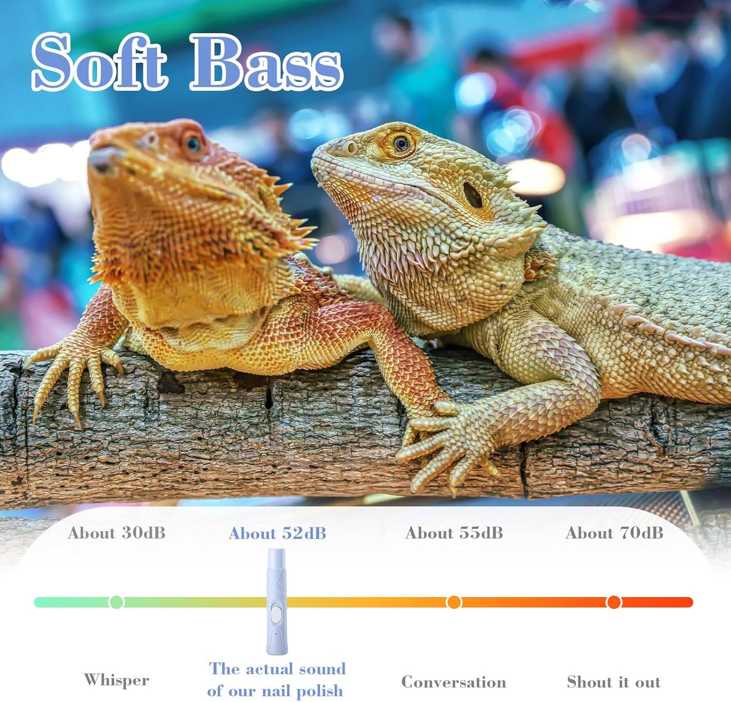 - Low Noise Operation for Comfortable Grooming: engineered with motor and mute technology, the bearded dragon nail grinder only produces a noise of around 52dB when operating; This low-noise operation ensures a quiet and comfortable grooming environment, making it an ideal choice for your bearded dragon and other pets