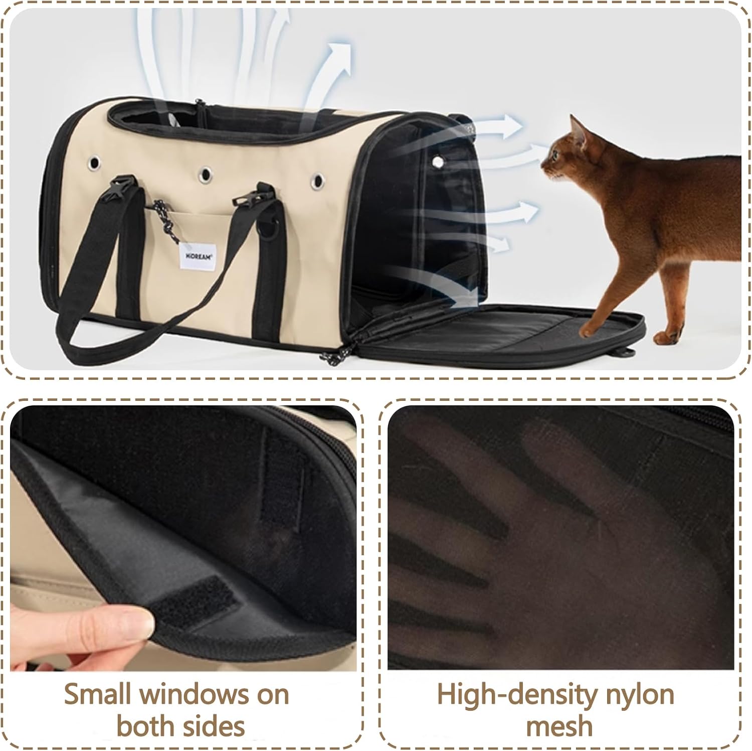 Pet Carrier Bag, Foldable Cat Bag Airline Approved, Soft-Sided Cat Travel Bag, Washable Dog Carrier Privacy Protection for Home Outdoor Travel(M, Brown)